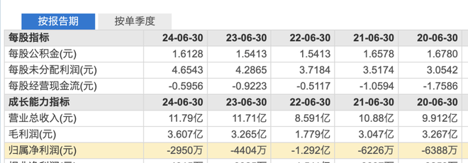 今年上半年,公司预计营业收入10.35亿元左右,与去年同期的11.79亿元相比,下滑约12.21%;归属于上市公司股东净亏损预计约9739万元,亏损扩大230.12%。