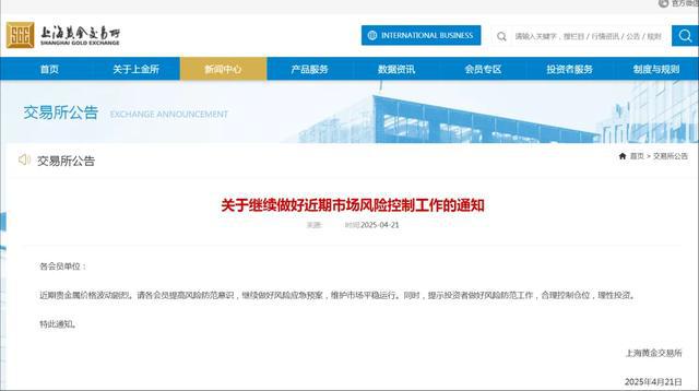 此外,上海黄金交易所21日发布《关于继续做好近期市场风险控制工作的通知》:近期贵金属价格波动剧烈。请各会员提高风险防范意识,继续做好风险应急预案,维护市场平稳运行。同时,提示投资者做好风险防范工作,合理控制仓位,理性投资。