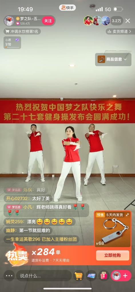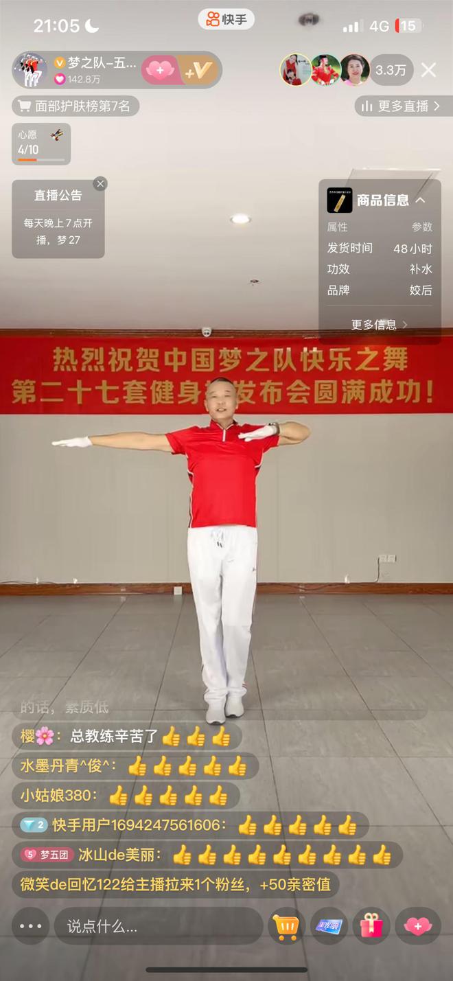 直到2019年,疫情爆发,线下跳操受阻后,在操友们的强烈要求下,五哥决定将 "教室" 搬到快手直播间,通过短视频、直播的方式带领大家跳操。