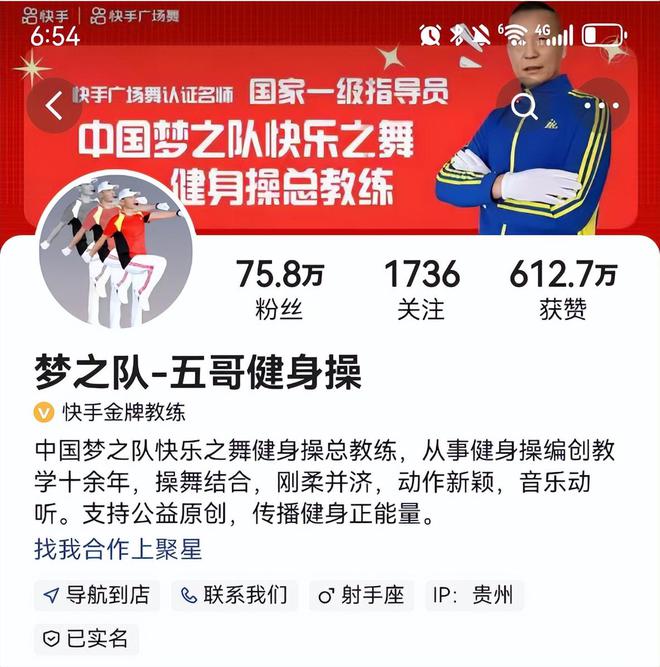 此后,五哥和他的 "梦操" 就像坐上了火箭一般,在快手上迅速走红,五哥不仅成为万千操友口中的 "总教练"。