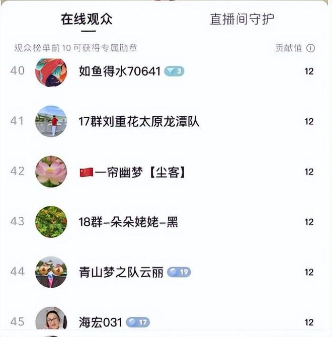 从直播间里满屏幕花草、风景、自拍头像,以及"爱生活""自由飞翔""健康人生"的昵称中,不难发现前来直播间学操的都是一些中老年人。他们因热爱 "梦操"互称为 "操友"。