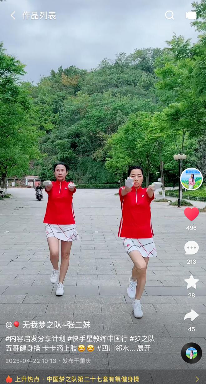 不仅如此,很多梦之队的领操员、普通队员也跟着五哥的步伐入驻了快手,开始记录分享自己的跳操及生活日常,在收获众多 "操友" 点赞留言互动的同时,不经意间也成为了平台上新晋健身博主。