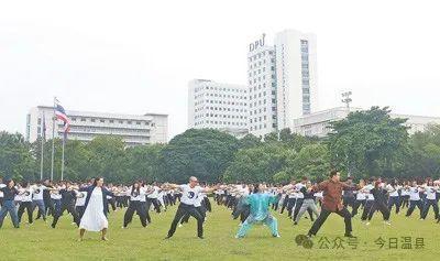 泰国海上丝路孔子学院学生在泰国博仁大学球场表演太极拳。张楚雄 摄