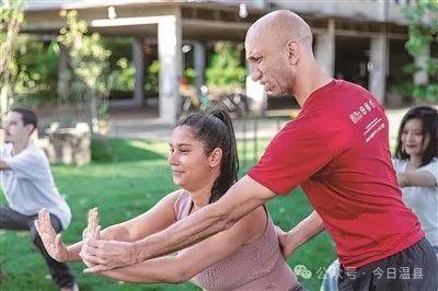 在巴西弗卢米嫩塞联邦大学孔子学院举办的太极文化体验活动上,当地太极拳教练纠正学生动作。本报拉美中心分社 威廉·科埃略·维亚纳 摄