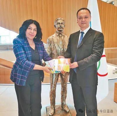 2024年11月,中国武术协会应邀派武术专家赴国际奥委会教授太极拳。其间,外交学院体育对外交流研究中心主任周庆杰(右)向国际奥委会首席运营官拉娜·哈达德赠送《十分钟学会太极拳》等图书。泽维尔·蒂西埃尔 摄