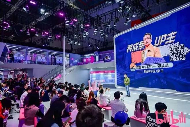在这一届上海车展期间,除了尹同跃和邓承浩,仰望汽车胡晓庆、小鹏汽车于桐、长城汽车吴会肖等多名高管,均在 B站展台开启了高管公开课。何小鹏甚至来到展台现场,和汽车 UP 主盛嘉诚边逛边聊,并为全网首个痛车版“陆地航母”揭幕。
