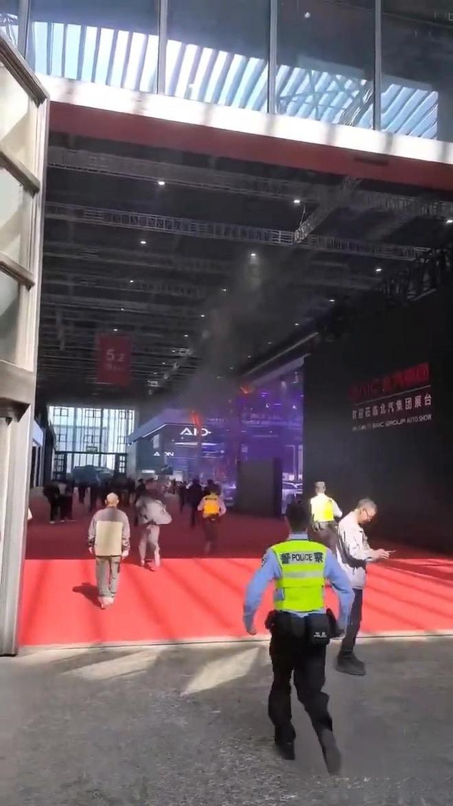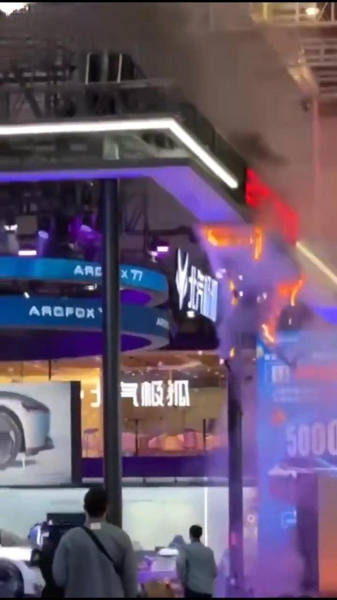 今日上午,有网友发视频称上海车展北汽极狐展台突发火灾。根据网友发布的视频显示,北汽极狐展台上方的架子起火,现场有浓烟冒起... 今日上午,有网友发视频称上海车展北汽极狐展台突发火灾。