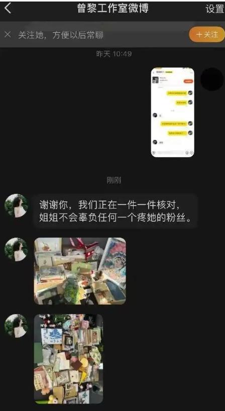 随后,该粉丝向曾黎工作室反映此情况,对方回复:“谢谢你,我们正在一件一件核对,姐姐不会辜负任何一个疼她的粉丝。”