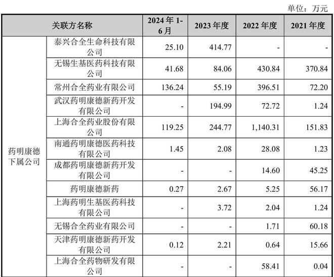 上海药明由药明生物(02269.HK)间接控股,药明生物与药明康德(603259.SH)同属药明系。同时,药明康德还通过全资子公司上海药明康德新药开发有限公司间接持有汉邦科技8.05%股份。报告期各期,汉邦科技与药明康德多个下属公司存在关联交易。