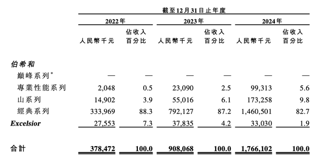目前,伯希和收入主要来自"经典系列",报告期内,"经典系列"收入占比超80%。