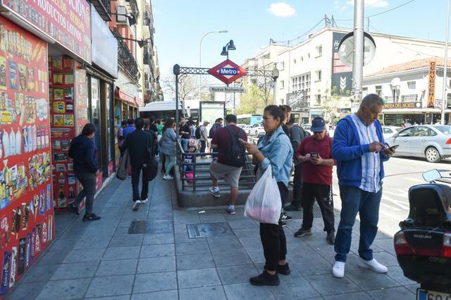 4月28日,在西班牙马德里,人们因停电地铁停运在地铁站外等候。新华社发(古斯塔沃·巴连特摄)