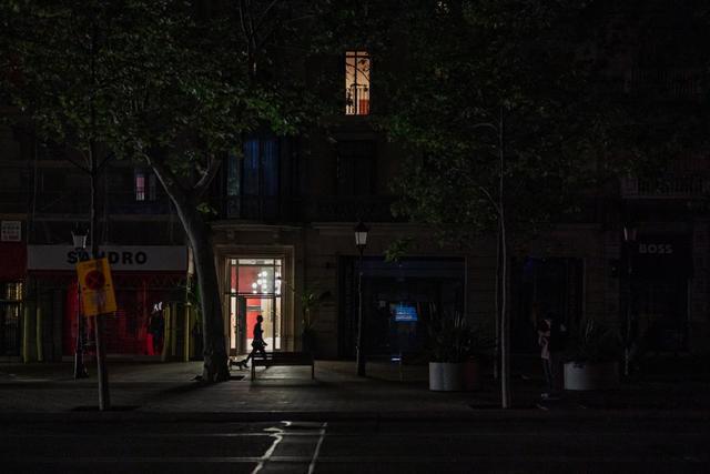 4月28日,在西班牙巴塞罗那,一条大街仍未完全恢复照明。新华社发(胡安·戈萨摄)
