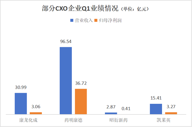 另从多家CXO企业的一季报来看,均出现业绩回暖的迹象。其中,康龙化成第一季度实现营收30.99亿元,同比增长16.03%;归母净利润3.06亿元,同比增长32.54%。