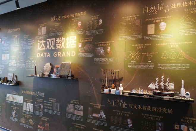 记者走进达观数据位于上海张江科学城的办公点,首先映入眼帘的是几面展示墙,一面陈列着该公司与多家机构合作的案例,一面是可供展示达观曹植大语言模型的电子屏,还有一面则展示了公司成立以来荣获的多个行业重量级奖项和成果。
