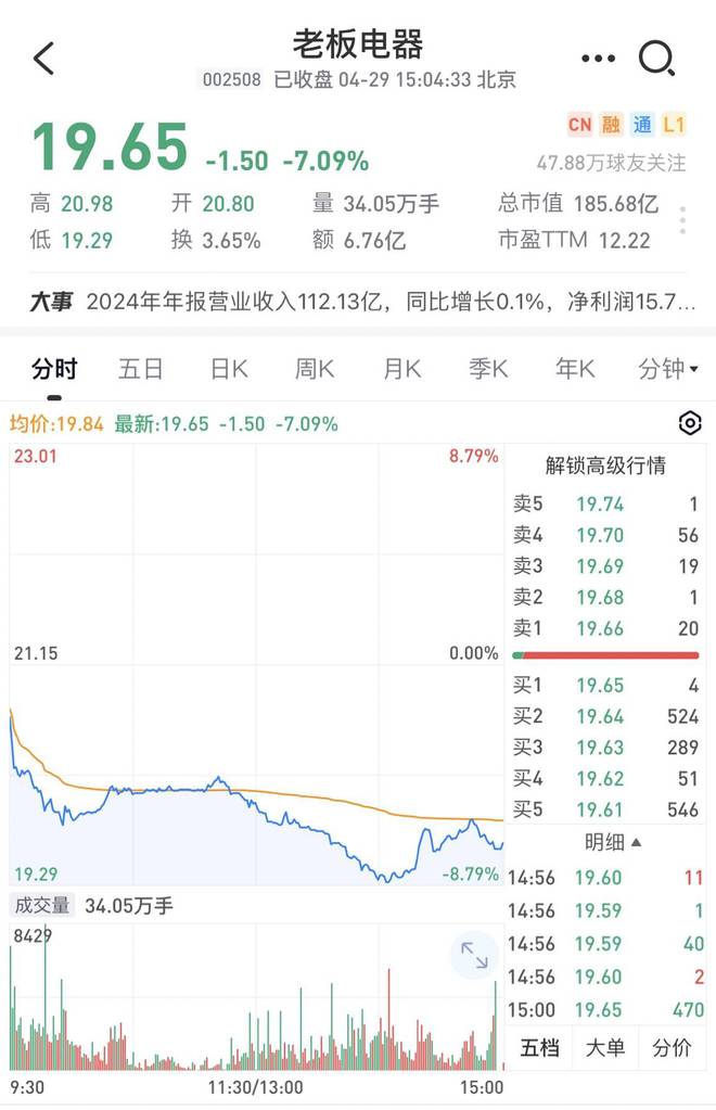 在这一行业背景中,对于老板电器的业绩,投资者多少有些心理预期,但4月29日也就是今日发布的2024年财报及2025年一季报,仍然让众多投资者尝到了更多的"苦涩"。