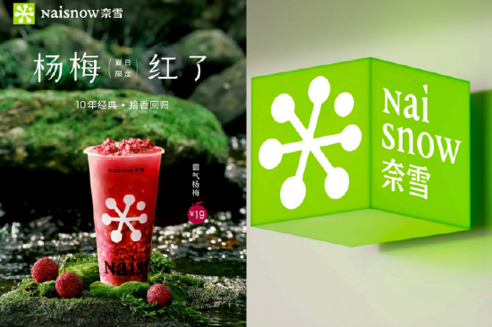 新Logo以雪花和果实为核心元素,保留奈雪标志性绿色调,且品牌名从“奈雪的茶”简化为“奈雪”,拼音由“NAIXUE”改为“Naìsnow”。