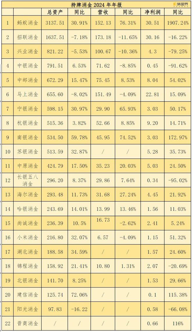 其中,江浙地区城商行对消金子公司的支持力度较大,尤其是后起的南银法巴、宁银消金,业绩突飞猛涨。(详见《巧了,南银法巴和宁银消金2024年均赚了3.03亿元(附业务拆解)》)此外,以中邮、中原、海尔消金为代表的消金公司,净利润还能获得超过20%的增长,实属不易。