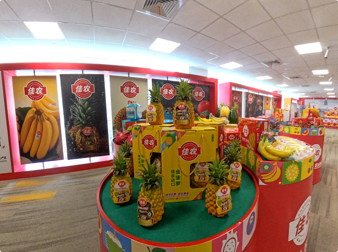 佳农集团的水果走进了奥乐齐、山姆等各大连锁商超、水果连锁店、新零售门店,以及大型批发商,并在2023年登上行业内品牌提及率和消费者渗透率榜首。在全球范围内,佳农集团已与70多个国家和地区的客户建立了长期合作关系,代理新西兰佳沛奇异果、乐淇苹果等国际知名品牌,是佳沛全球第二大代理商。此外,佳农集团的香蕉、菠萝进口规模以及生姜、苹果、大蒜的出口规模连续多年位列全国第一。