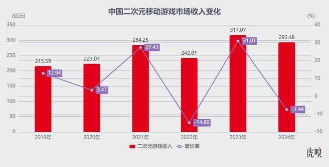 这背后,深层次原因在于:宏观层面,市场上新品类、热门题材层出不穷,二次元题材的号召力正在逐渐衰退——中国游戏工委发布《2024 年中国游戏产业报告》,去年国内二游市场实际收入同比下降 7.44% 至 293.48 亿元,仅强于主页游戏和单机游戏,连小程序游戏都以 398.36 亿收入力压二游,而米哈游至今未能在其他游戏品类上证明自己。