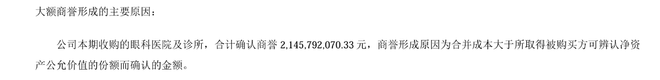 截至2024年末,爱尔眼科因收购子公司形成的商誉初始金额达101.69亿元,占资产总额的30.58%。