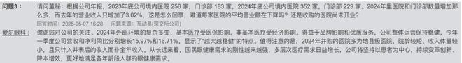 对此,爱尔眼科在投资者问答中表示,2024年并购的医院多为地县级医院,院龄较短、收入体量较小,且只计入并表后的收入而非全年收入。