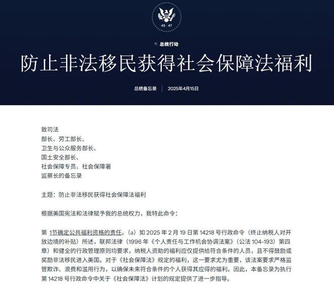 EBE项目的冻结正值特朗普阵营及其盟友——包括“政府效率部”(Doge)前负责人埃隆·马斯克——频繁散布关于无证移民滥用社保福利的虚假言论之际。特朗普政府也于4月15日发布备忘录,要求防止无证移民“非法领取”社会安全福利。