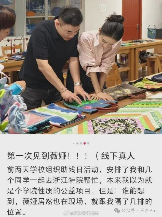 最近的一次是上个月,有网友在线下偶遇薇娅。据网友介绍,当天学校组织助残日活动,没想到在活动现场碰到了薇娅。从图片上看,薇娅状态不错。