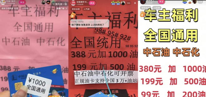 蓝鲸新闻6月10日讯(记者 陆鹏鹏 赵梦)"家人们,今天福利放送,中石化官方合作,388元抢1000元加油卡,全国通用、... 蓝鲸新闻6月10日讯(记者 陆鹏鹏 赵梦)"家人们,今天福利放送,中石化官方合作,388元抢1000元加油卡,全国通用、限量发售、先到先得!"直播间里,一名主播情绪激昂地推销着所谓的"中石化折扣加油卡"。这看似巨额的优惠,实则是一场彻头彻尾的骗局。