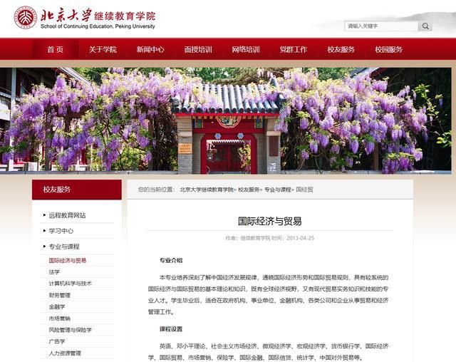 北京大学继续教育学院官方网站2013年曾发布国际经济与贸易专业简介,其中提到,“学生毕业后,适合在政府机构、事业单位、金融机构、各类公司和企业从事贸易和经济管理工作。”