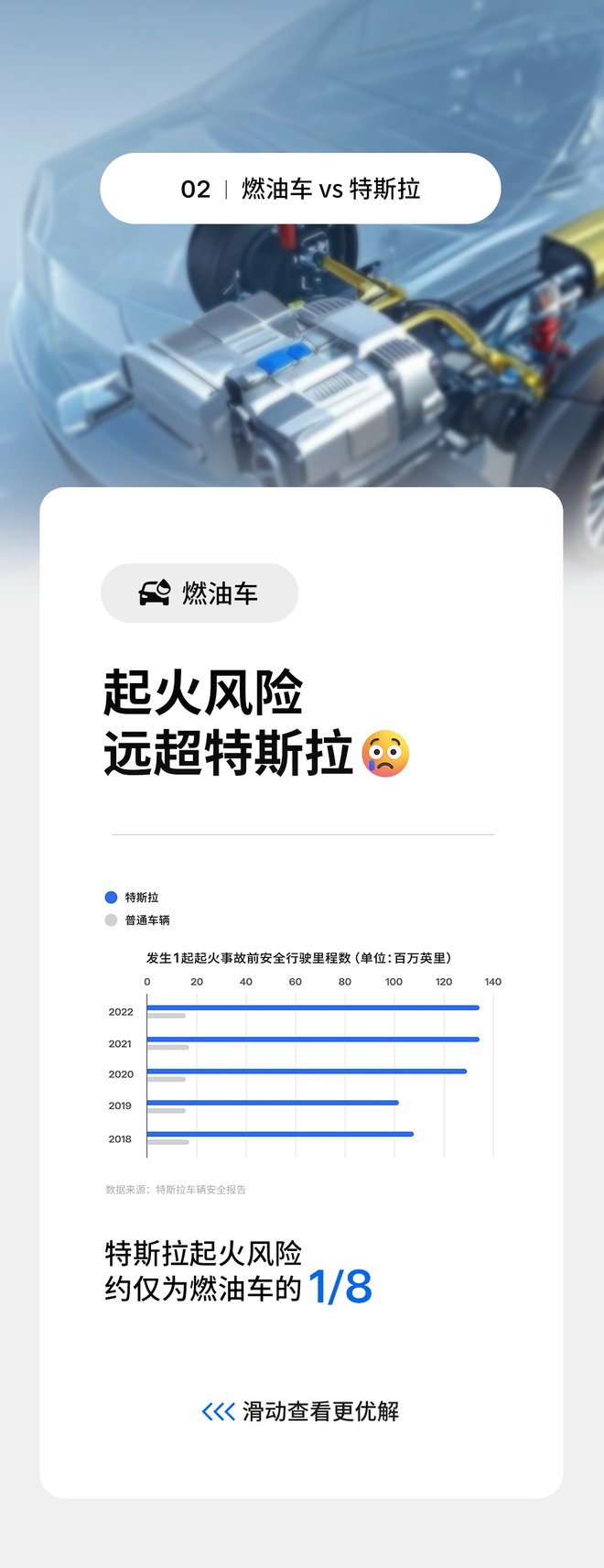 6月9日,特斯拉发布文章探讨越来越多车主从传统燃油车转向特斯拉的原因。文章指出,特斯拉的低起火风险成为车主选择的重要考量...    6月9日,特斯拉发布文章探讨越来越多车主从传统燃油车转向特斯拉的原因。文章指出,特斯拉的低起火风险成为车主选择的重要考量。文章称,燃油车的起火风险远超特斯拉,高达约8倍。相比传统燃油车,特斯拉的电池管理系统和安全设计显著降低了起火事故的概率,让车主在使用过程中更加安心。此外,特斯拉的自动驾驶技术、更低的使用成本、环保优势以及不断更新的智能功能,也吸引了大量车主。随着消费者对汽车安全和智能出行需求的增加,特斯拉凭借其全面优势,成为越来越多车主的首选。