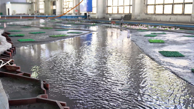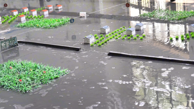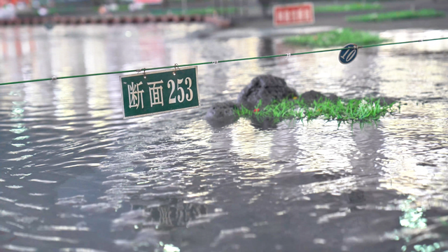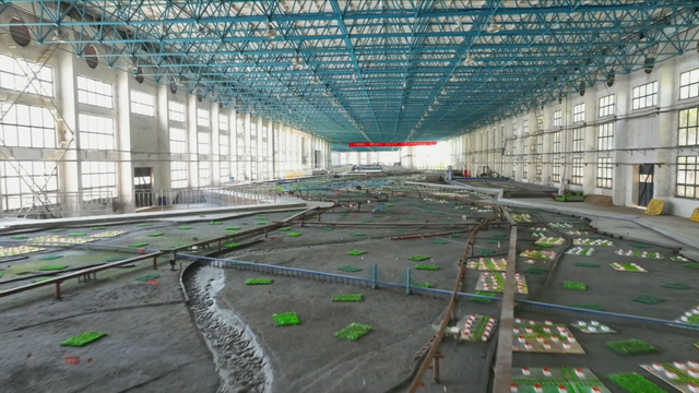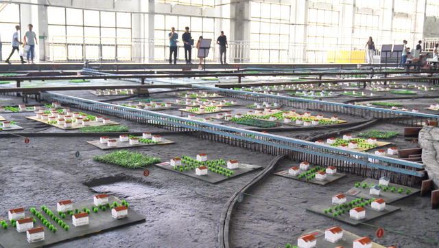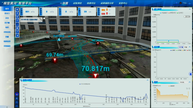试验大厅内,“黄河下游动床模型”按1:600水平比尺、1:60垂直比尺构建,800米长的模型精准复现黄河下游299公里长的游荡性河段和165公里长的过渡性河段。这是黄河下游河道游荡摆动最大、冲淤演变最复杂、悬河形势最严峻、滩区人口最密集的河段,也是防洪威胁最大、最难治理的河段。通过物理模型反演洪水演进与河床冲淤,科研人员可对河势变化、工情险情、滩区淹没等情况进行预判,为实战部署提供技术锚点。
