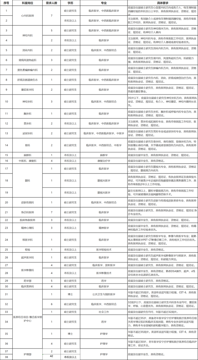 注:招聘动态请应聘者密切关注医院官网或医院微信公众号,届时发布公告,不再电话另行通知。