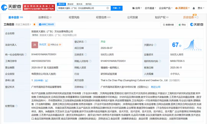 该公司成立于2020年9月,法定代表人为孙元文,注册资本500万人民币,经营范围包括电子产品销售、自然科学研究和试验发展、文具用品零售等,由名创优品(广州)有限责任公司全资持股。