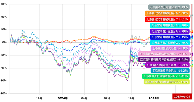 后来的故事大家都很熟悉,茅台们跌跌不休,消费基金业绩大幅回撤、管理规模腰斩、争议不断。以胡昕炜的代表产品汇添富消费行业混合来说,截至2025年6月,该基金净值从最高点的9.977元跌至4.591元,回撤超50%,近三年严重跑输同类平均水平。
