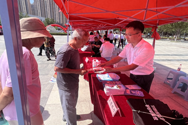 工行新乡分行走进社区广场,设置展台,开展防范非法金融活动宣传,让金融知识走进更多家庭。