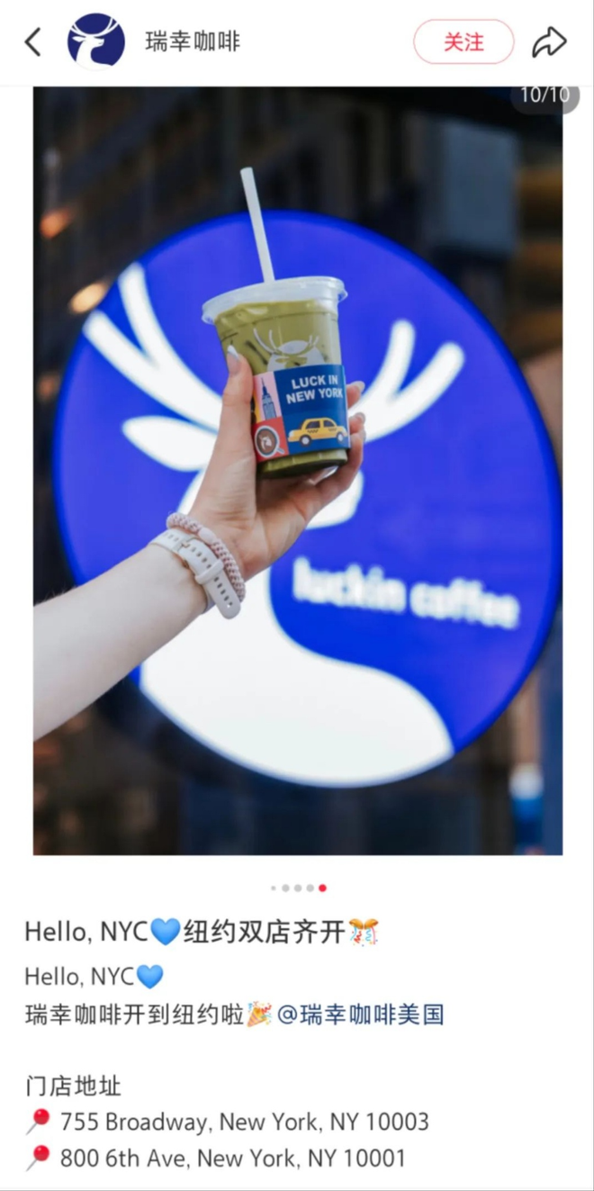 上周末,瑞幸在纽约举办一系列的快闪活动,邀请粉丝们上传在街头偶遇瑞幸咖啡车的"野生图",用美式营销包装中式爆款。