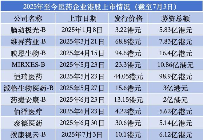 在医药领域,自恒瑞医药5月底“A+H”引爆港股后,内地药企赴港IPO的队伍越来越长。截至6月30日,今年已有10家生物医药企业成功登陆港交所,几乎追平2023全年,并超过2024全年,募资总额达到174.89亿港元。其中,恒瑞医药募资总额高达113亿港元,创下2020年以来港股医药板块最大融资规模纪录,港股整体复苏态势明显。