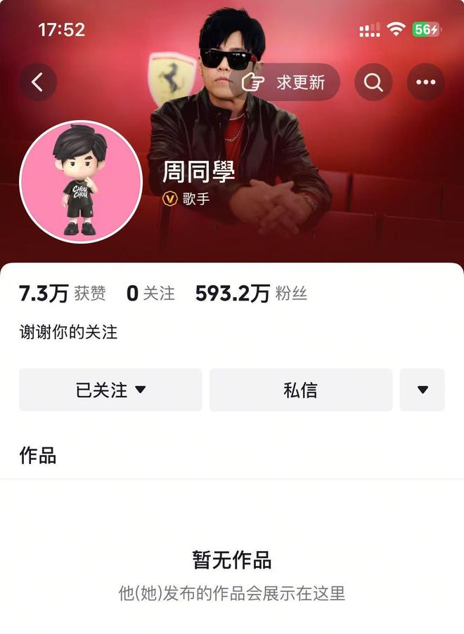 周杰伦抖音账号粉丝近600万 访客 2025-07-09 20:46:24 237 默认 摘要: 今日,抖音官宣周杰伦入驻。截至下午17点50分左右,周杰伦账号粉丝已经涨至近600万。... 今日,抖音官宣周杰伦入驻。截至下午17点50分左右,周杰伦账号粉丝已经涨至近600万。 标签: 周杰伦 入驻 海报 阅读 QQ 分享 微博分享 微信分享 分享 上一篇国办发布16条举措 “高效办成一件事”再加力 下一篇工信部开通重点车企账期承诺线上反映窗口 国办发布16条举措 “高效办成一件事”再加力上一篇 工信部开通重点车企账期承诺线上反映窗口下一篇 相关推荐 周杰伦入驻 曝字节视觉大模型负责人杨建朝内部官宣休息,周畅接任 2025-07-17 杭州成立专班介入处理宗庆后遗产纠纷 2025-07-17 爱康国宾曾因体检漏检被索赔15万 2025-07-17 三兄妹在港起诉宗馥莉文书曝光 2025-07-17 爱康集团回应“女子漏检癌症”事件:将邀请第三方机构及专家分析原因 2025-07-17 2025暑期档总票房破35亿 2025-07-17 美团王莆中:将保证美团骑手收入永远在蓝领第一梯队 2025-07-17 卢伟冰:小米深圳大厦明天正式开园 2025-07-17
