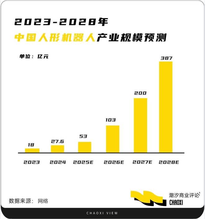 玩家的入局加速了行业规模的壮大发展,中商产业研究院发布的《2025—2030年中国人形机器人行业分析及发展前景研究预测报告》显示,2024中国人形机器人产业规模约27.6亿元,较上年增长53.33%,预测2025年中国人形机器人产业规模将达到53亿元,2028年达到387亿元。