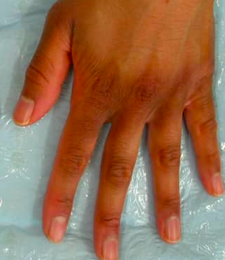 和手腕对比,敏感、泛红的脸部更暗沉显黑。图片来源:自己拍的
