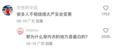 有网友点出,这种黑法叫“捂黑”“热黑”,从字面意思理解就是皮肤被遮盖后,由于温度高、不透气而变暗沉了。